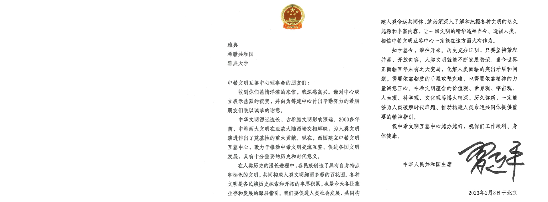 两国建立必赢优惠y272net,致力于推动中希文明交流互鉴、促进各国文明发展,具有十分重要的历史和时代意义。