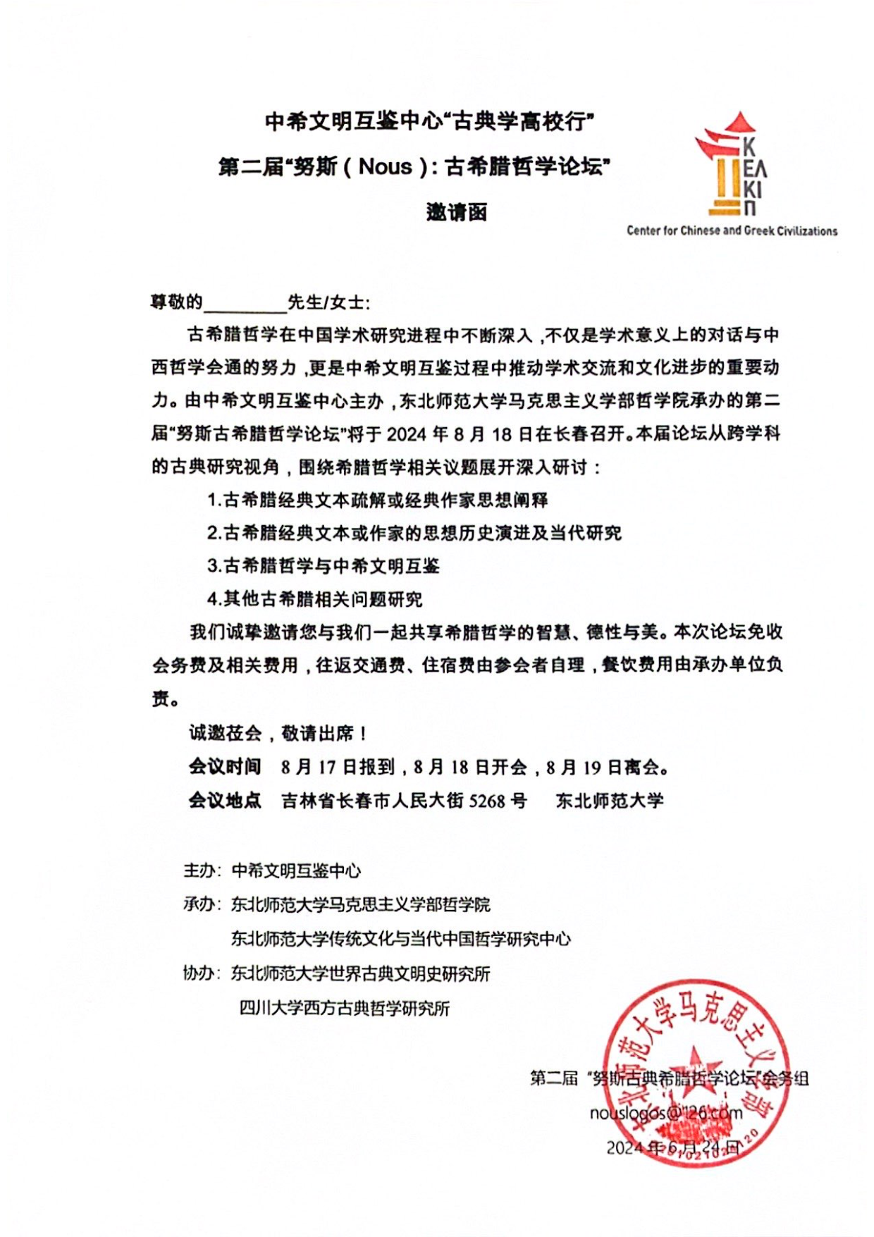 必赢优惠y272net“古典学高校行”暨第二届“努斯(Nous):古希腊哲学论坛”邀请函